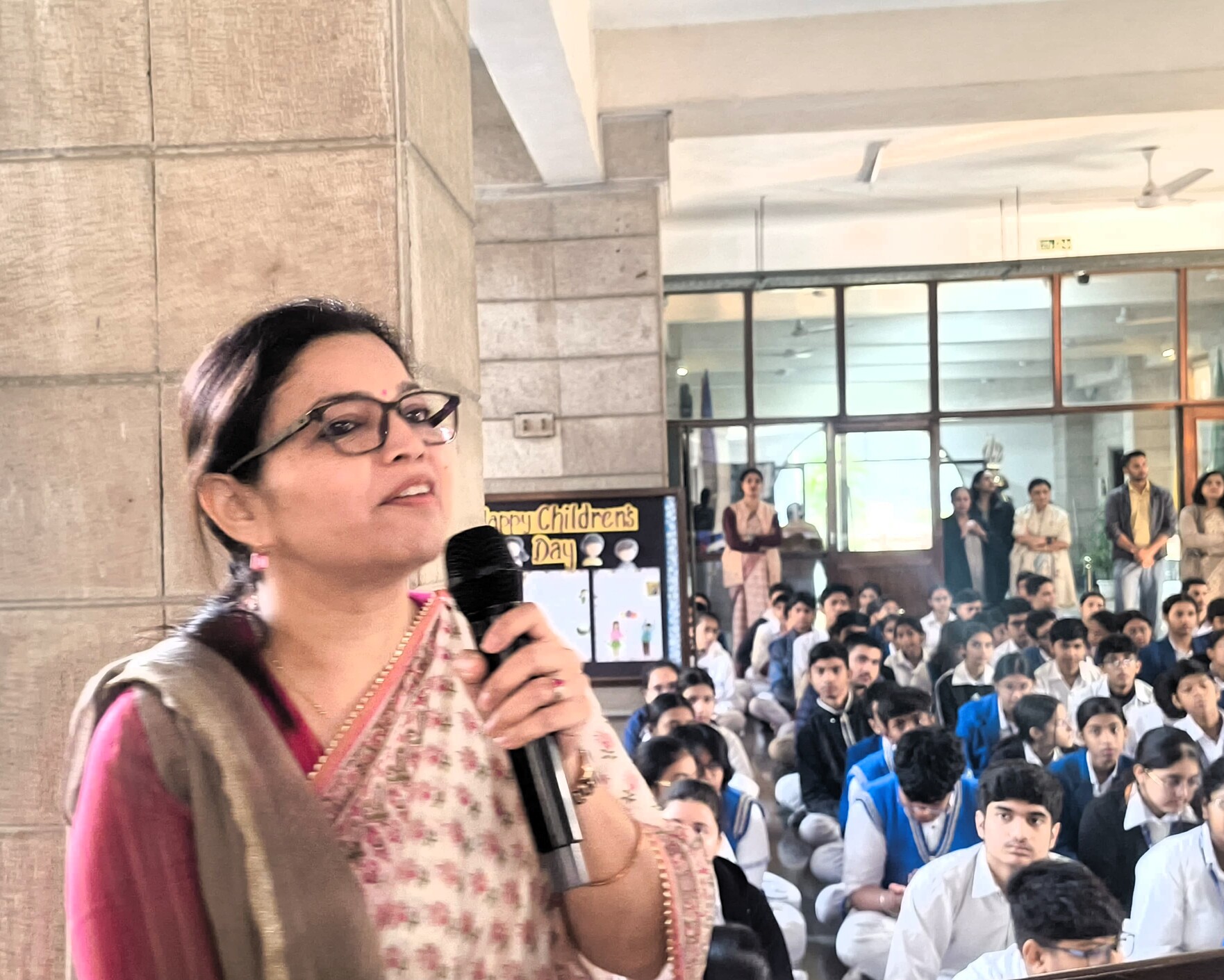Children’s Day at Manava Bharati India International School was celebrated with heartfelt warmth, enthusiasm, and cheer. The morning assembly opened with a soulful prayer by staff members, setting a calm and joyful tone. As per tradition, the “Thought of the Day” was shared by Ms. Suhina Roshangar, followed by the day’s news presented by Ms. Arpita Chatterjee. The highlight of the morning was a delightful cultural programme by the teachers. School librarian Ms. Tarannum Athar recited a touching poem inspired by everyday school life, while School Director Mrs. Bharati Pandey, accompanied by Mr. Debjyoti and Mr. Rohit Darard, filled the air with melodious songs that brought smiles all around. The celebrations continued in classrooms, where students enjoyed Taare Zameen Par along with popcorn—a perfect treat for the special day. The morning ended with loud applause and happy faces, capturing the true spirit of Children’s Day: joy, appreciation, and the magic of childhood.