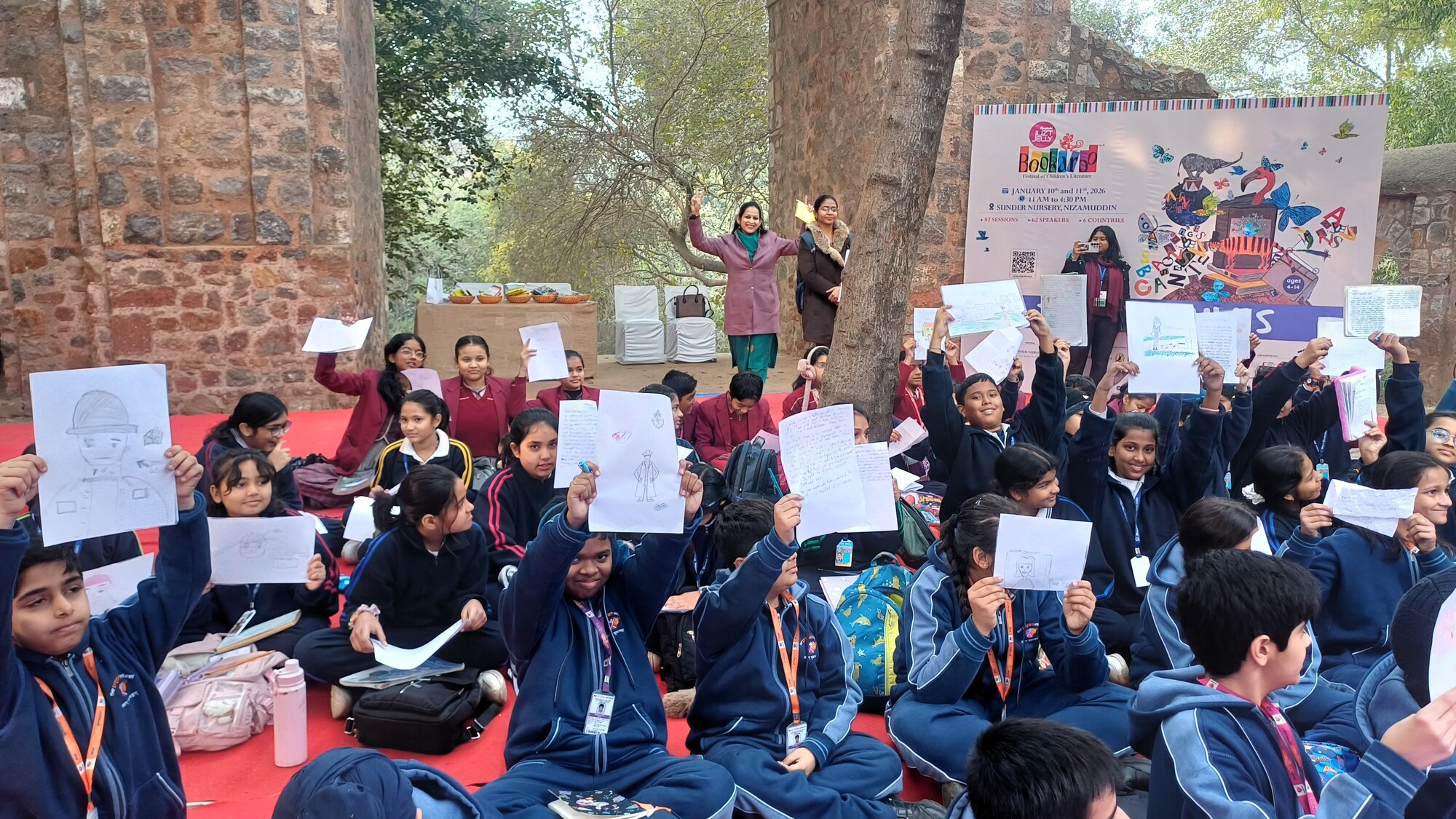 On a crisp winter morning, Friday, January 9, 2026, enthusiastic readers from Class 6, accompanied by three teachers, visited the Bookaroo Children’s Literature Festival at Sunder Nursery, Delhi—a vibrant celebration of reading that brings together authors, illustrators, and storytellers under one roof. The day began with an engaging session by author Vikas, who encouraged students to see themselves as storytellers. Through a fun ice-breaking activity, children explored imagination, learned the difference between mystery and suspense, and eagerly responded to creative story prompts through writing and drawing. This was followed by an interactive session on making history exciting, led by acclaimed children’s writer Sudha Acharya. Divided into groups, students tackled thought-provoking historical scenarios, brainstorming ideas with great enthusiasm. The visit concluded at the Bookaroo Book Fair, where students browsed books, met authors, and enjoyed the serene surroundings of Sunder Nursery. The experience left our young readers inspired, curious, and eager to read more—making Bookaroo a truly memorable literary journey.