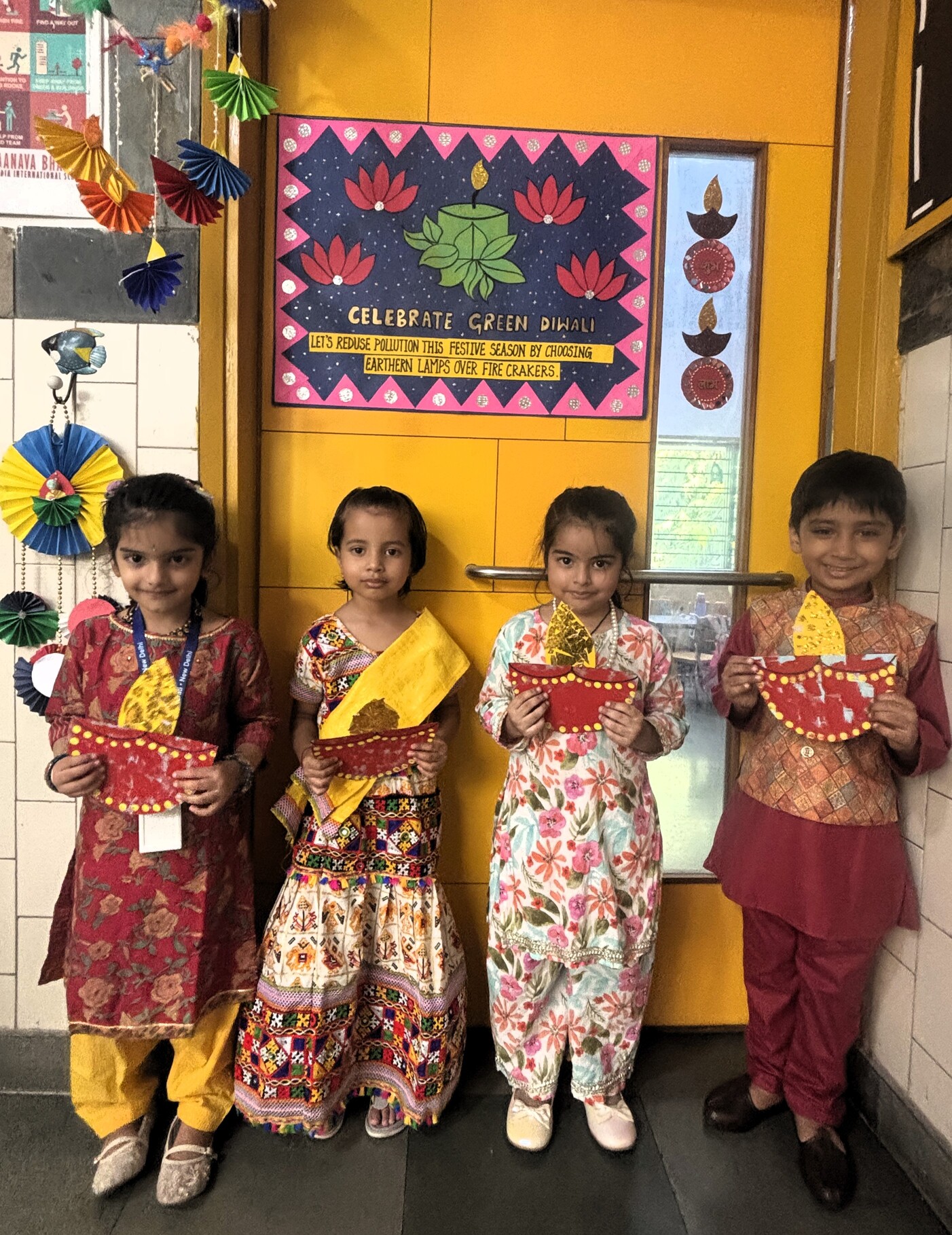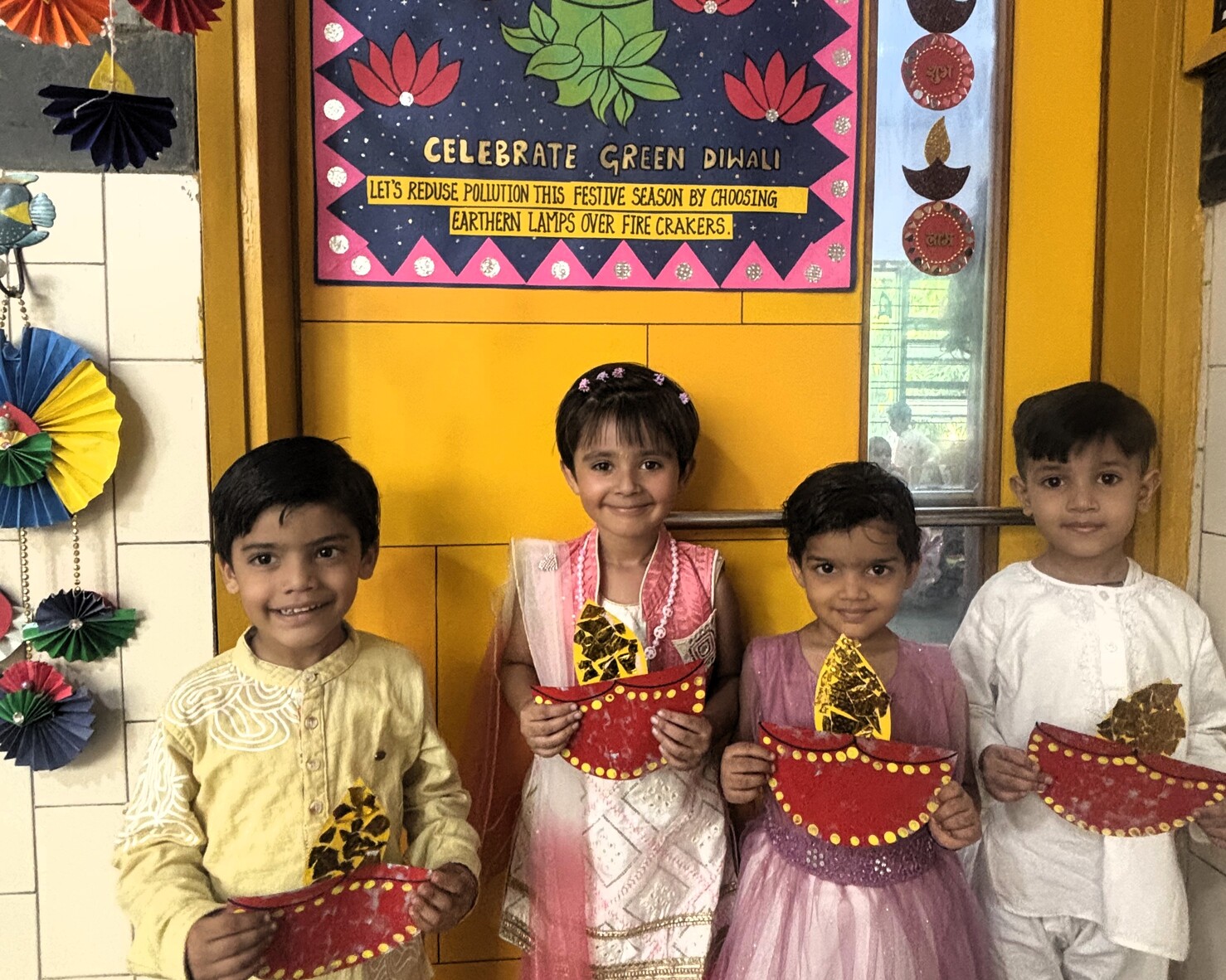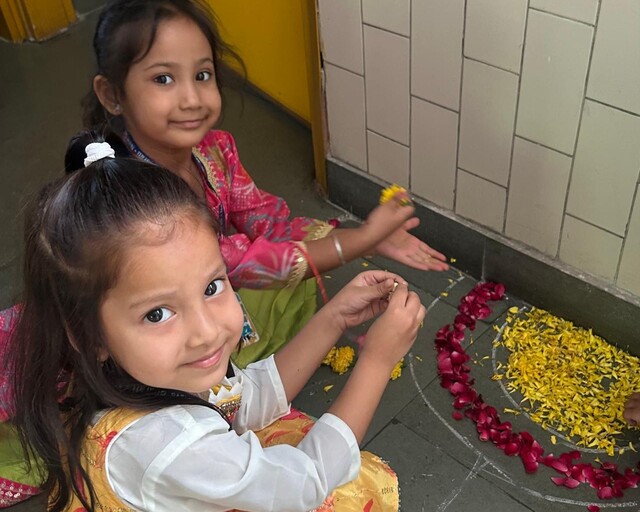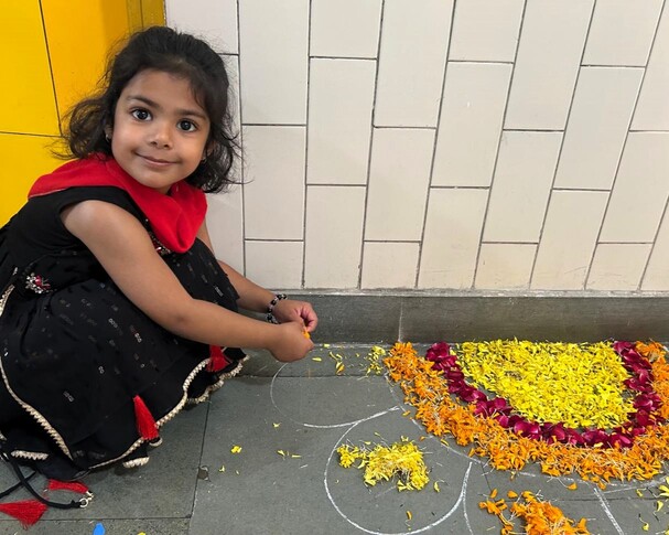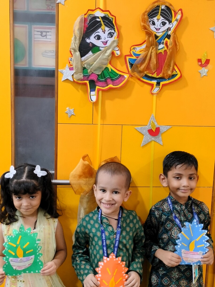 Uditayan lit up with festive cheer as our little ones celebrated the Festival of Lights with immense joy and enthusiasm. Children from Preschool, Pre-Primary, and Class I took part in the Diwali celebration with sparkling smiles and eager hearts. The celebration began with heartfelt poems and lines on the true essence of Diwali — spreading light, love, and goodness. Classrooms turned radiant with creativity as children made colourful diyas, festive wall décor, and vibrant flower rangolis adorned with glowing lamps. The Preschoolers charmed everyone with a lively action song, while the Pre-Primary children performed a graceful dance celebrating the spirit of Diwali. Adding to the festive delight, Teacher Ms. Yogyata’s enchanting folk dance had everyone tapping their feet with joy. Dressed in beautiful traditional attire and sharing sweets with friends, our little Uditayans filled the day with laughter, lights, and togetherness — truly embodying the magic of Diwali. ✨