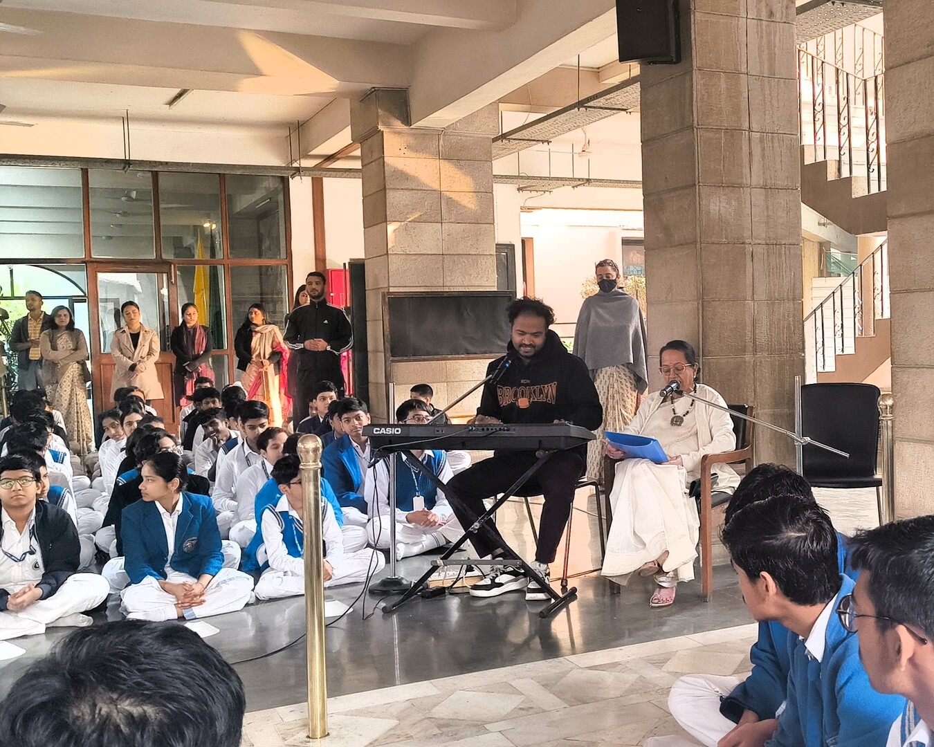 Children’s Day at Manava Bharati India International School was celebrated with heartfelt warmth, enthusiasm, and cheer. The morning assembly opened with a soulful prayer by staff members, setting a calm and joyful tone. As per tradition, the “Thought of the Day” was shared by Ms. Suhina Roshangar, followed by the day’s news presented by Ms. Arpita Chatterjee. The highlight of the morning was a delightful cultural programme by the teachers. School librarian Ms. Tarannum Athar recited a touching poem inspired by everyday school life, while School Director Mrs. Bharati Pandey, accompanied by Mr. Debjyoti and Mr. Rohit Darard, filled the air with melodious songs that brought smiles all around. The celebrations continued in classrooms, where students enjoyed Taare Zameen Par along with popcorn—a perfect treat for the special day. The morning ended with loud applause and happy faces, capturing the true spirit of Children’s Day: joy, appreciation, and the magic of childhood.