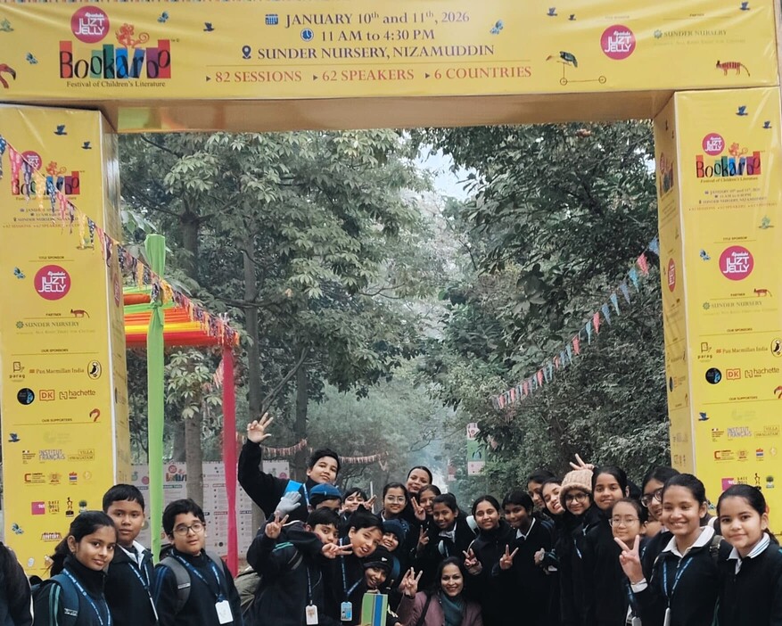 On a crisp winter morning, Friday, January 9, 2026, enthusiastic readers from Class 6, accompanied by three teachers, visited the Bookaroo Children’s Literature Festival at Sunder Nursery, Delhi—a vibrant celebration of reading that brings together authors, illustrators, and storytellers under one roof. The day began with an engaging session by author Vikas, who encouraged students to see themselves as storytellers. Through a fun ice-breaking activity, children explored imagination, learned the difference between mystery and suspense, and eagerly responded to creative story prompts through writing and drawing. This was followed by an interactive session on making history exciting, led by acclaimed children’s writer Sudha Acharya. Divided into groups, students tackled thought-provoking historical scenarios, brainstorming ideas with great enthusiasm. The visit concluded at the Bookaroo Book Fair, where students browsed books, met authors, and enjoyed the serene surroundings of Sunder Nursery. The experience left our young readers inspired, curious, and eager to read more—making Bookaroo a truly memorable literary journey.